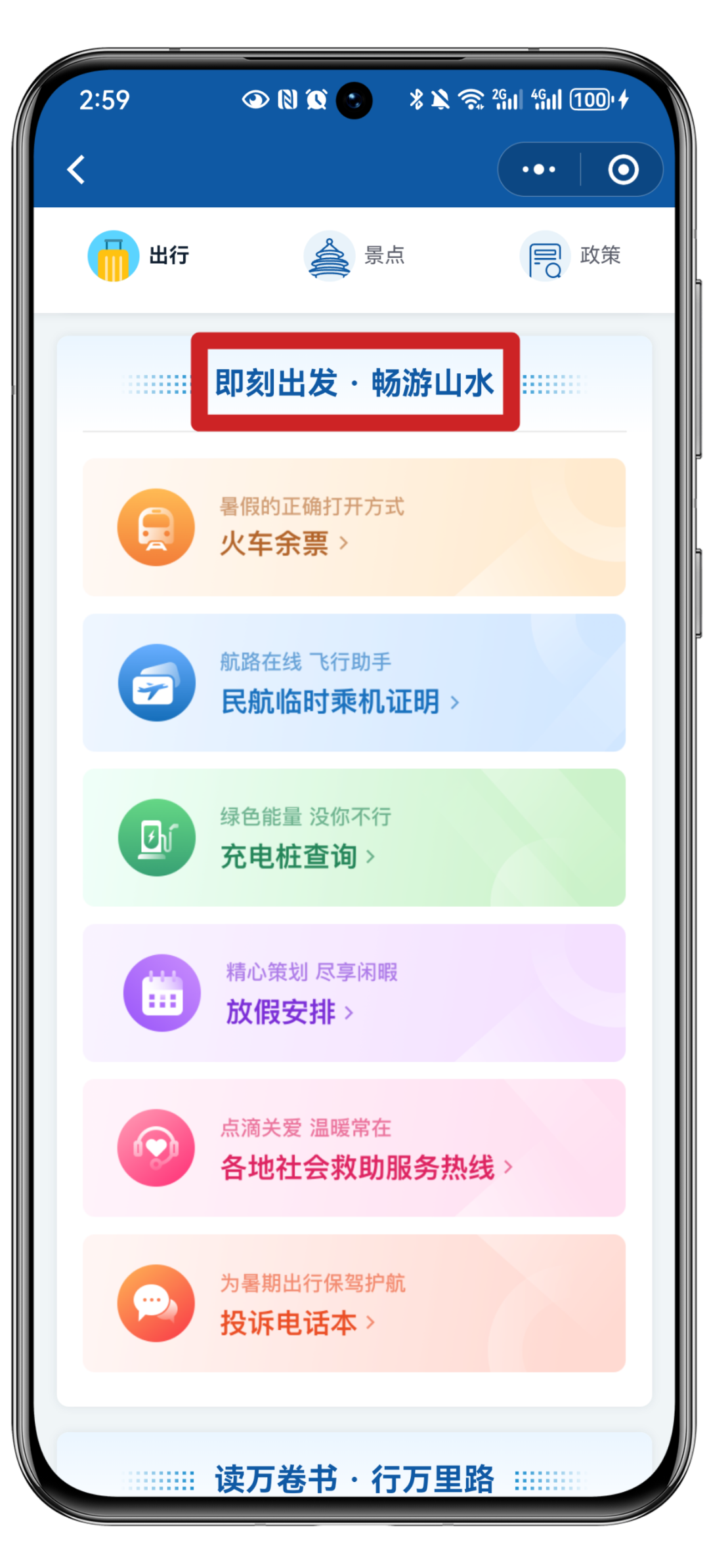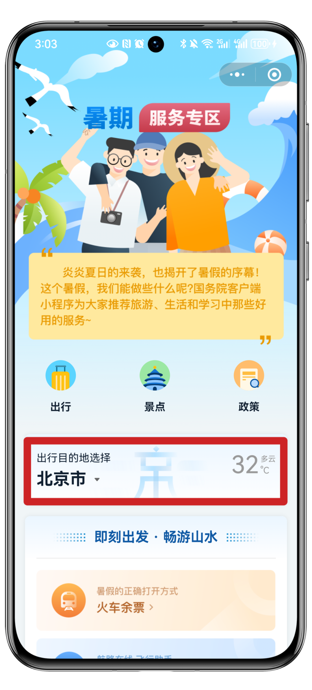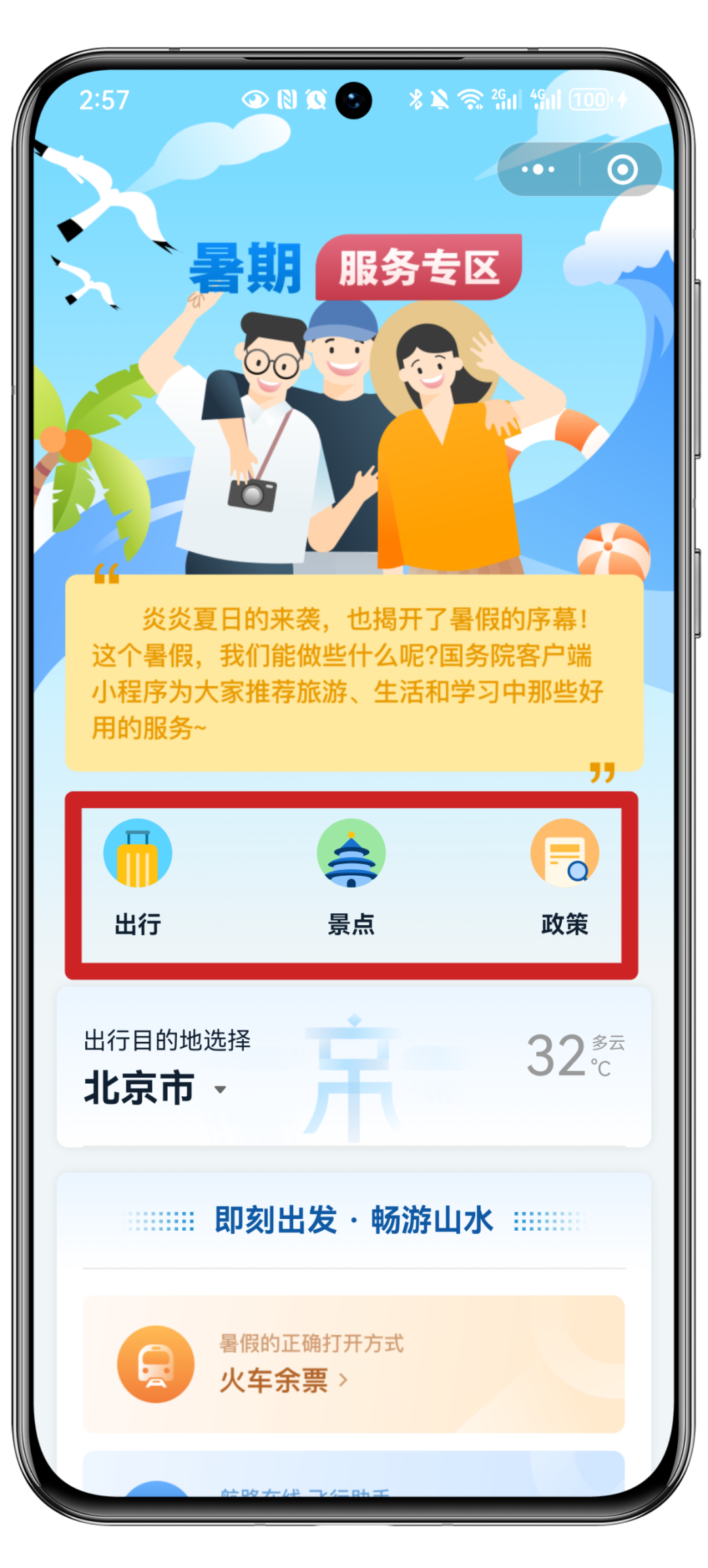 体育游戏app平台同学们! 暑假照旧开启啦! 非论是决策一场说走就走的旅行 照旧准备充实自我 来国务院客户端小范例 【暑期作事专区】 陪你渡过一个欣忭的暑假 参加作事页面后 在出行、景点和计策 中摄取念念要查询的骨子 出行 即刻启航·畅游山水 这里包括了 火车余票查询 民航临时伺机阐扬注解 充电桩查询 休假安排和投诉电话本 等一系列作事 助你惩办路
